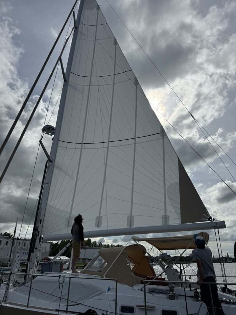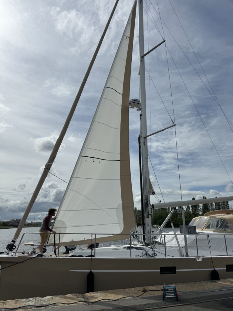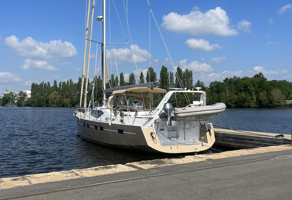 • Sails: all-purpose long-distance cruising sail – Upwind sail area 148.7 m² Vertically battened mainsail in Hydranet : area 68.70 m²