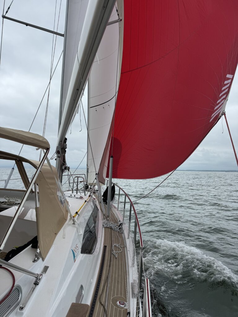 • Gennaker on a furler : 120 m² sail area, with storage bag on deck