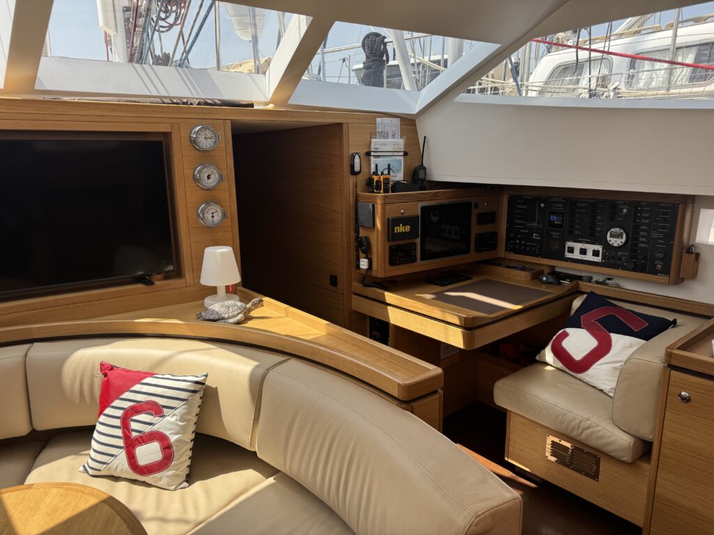 • Onboard electronics: GPS, autopilot, STARLINK Maritime high-speed internet, Class B AIS, TIME ZERO Mega Wilde software onboard computer, high-end navigation instruments.